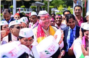 मुख्यमंत्री पुष्कर सिह धामी के आमंत्रण पर सीएम आवास पर सांस्कृृतिक दलों का एक मेला सा जुटा। होली(Uttarakhandi Holi) के गीत गूंजे। पारंपरिक गायन हुआ। ढोल, मंजीरे बजे। पारंपरिक वाद्य यंत्रों की संगत ने होली गीतों के प्रभाव को और बढ़ा दिया। आओ दगड़ियो, नाचा गावा, आ गई रंगीली होली का आह्वान यदि अल्मोड़ा से आए कलाकारों ने किया, तो राठ क्षेत्र के कलाकारों ने गाया-आई डान्ड्यू बसंत, डाली मा मौल्यार।