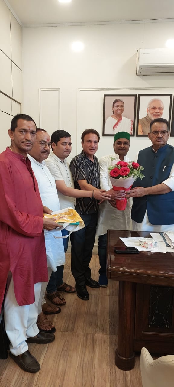 आज भारतीय किसान यूनियन प्रधान उत्तराखंड के पदाधिकारियों ने उत्तराखंड प्रदेश अध्यक्ष रवि पंवार के नेतृत्व में कैबिनेट कृषि मंत्री गणेश जोशी जी से मोरी ,संकरी उत्तरकाशी क्षेत्र के कृषि बागवानी से जुड़े हुए किसानों की खेती सुरक्षा हेतु जमीनों की घेर बाढ़ एवं भूमि सुरक्षा सुधार कार्य को स्वीकृत कराने के उद्देश्य से माननीय कृषि मंत्री उत्तराखंड सरकार गणेश जोशी जी से मुलाकात की। माननीय मंत्री जी ने जल्द ही समस्याओं के निस्तारण का भरोसा दिया। साथ में प्रदेश प्रभारी दिलबर सिंह रावत जी, जिला अध्यक्ष उत्तरकाशी त्रेपन सिंह राणा जी, जिला प्रवक्ता उत्तरकाशी भरत सिंह रावत जी और जिला सचिव उत्तरकाशी जोगिंदर सिंह चौहान आदि मौजूद रहे।